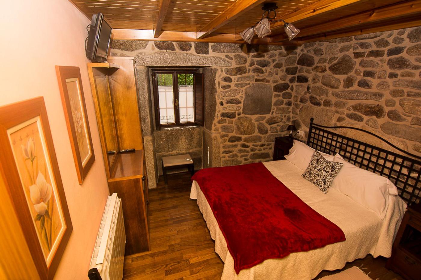 Habitación Doble. Esta habitación con encanto tiene paredes rústicas de piedra y vigas de madera, WiFi gratuita, TV vía satélite y balcón o ventana con vistas a los bonitos jardines. El baño privado está equipado con secador de pelo y artículos de aseo. ;